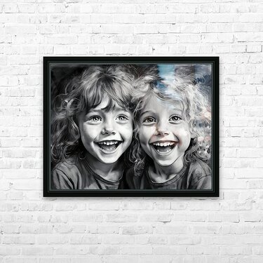These two young girls are best friends forever and spend all their free time together. They live next door to one another and share everything along with their laughter. Bring these charming kids into your home or office today. Simply select the media and size and we will create your perfect fit wall art. All art ships free to the continental US and Canada.