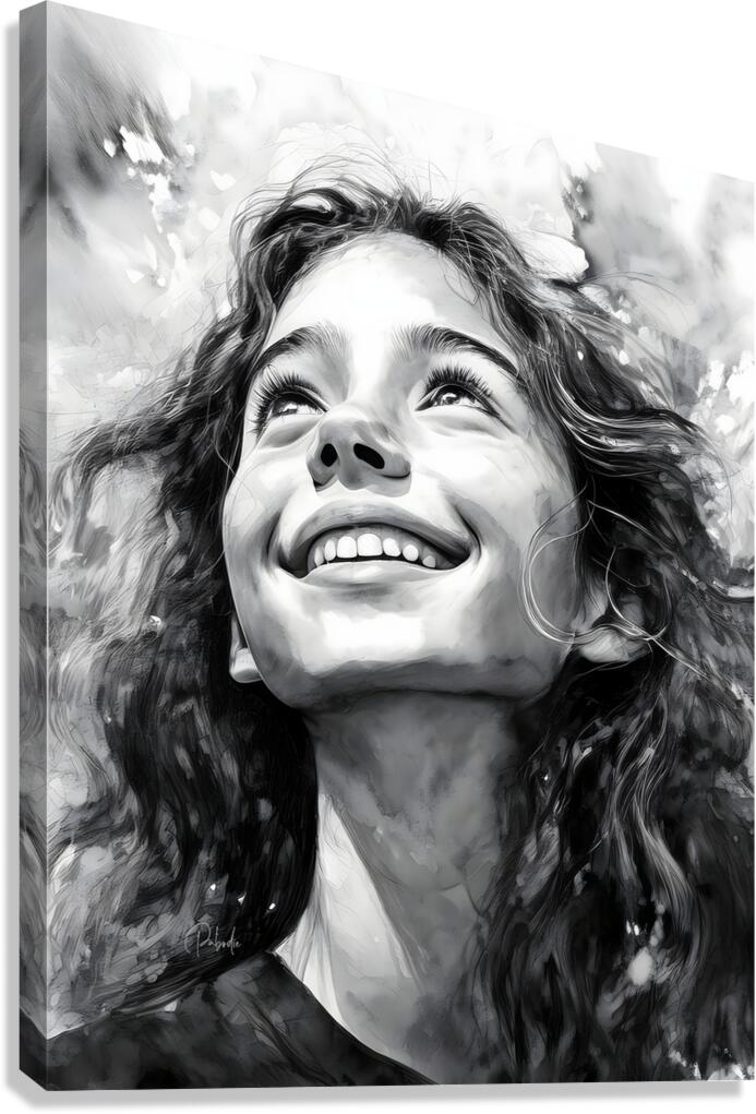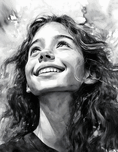 This teen is a true carefree spirit - you can see her joy and attitude in her smile as she glances up to the heavens. Her curly long dark hair is full and lush and you cant help but feel her spirit come through in this art. Available in your choice of media sizes and finishes bring some joy into your home or office today.