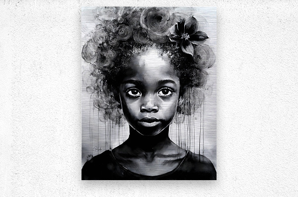 This beautiful child with her ebony skin is dressed up with her hair up in curls and a flower over her ear for the perfect accent. Her large eyes look quietly out as she looks at herself in her mirror and decides she looks just right. Another artist print from the Faces Collection she can also hang with one or more in the series for a dynamic art wall effect. CHoose your sizes and media preference as well as any special finishes.
