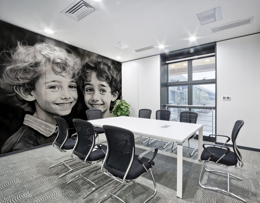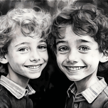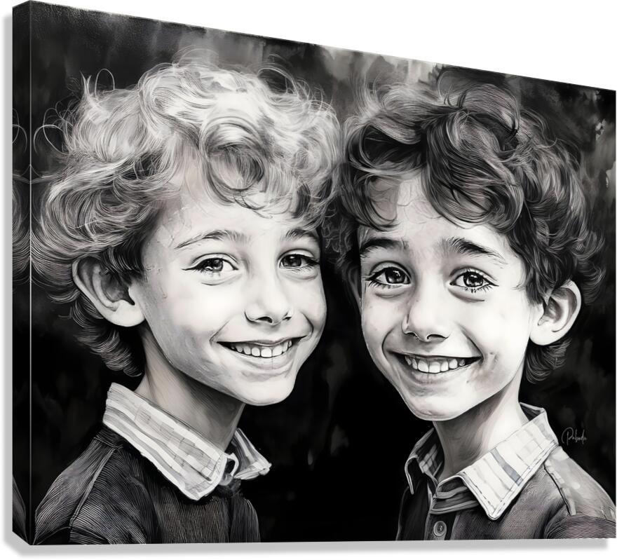 These two boys are brothers and best friends. One dark the other light they are opposites in personalities and appearance but best of friends always. These happy boys look awesome in a home or office and even more dramatic when hung with one or more from the same Faces Collection. Choose your preferred media and size and bring these smiles home today.