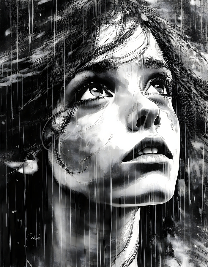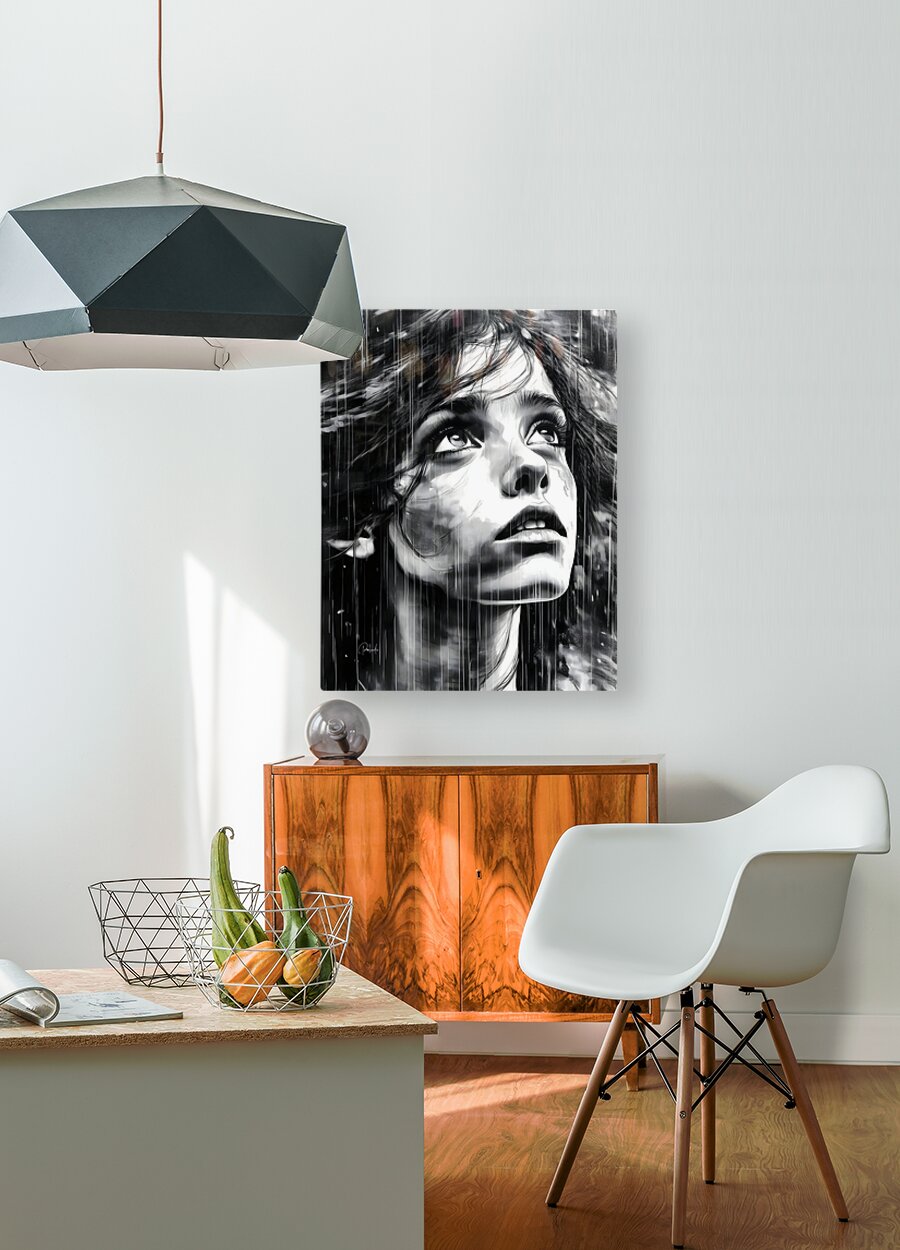 This young teen has big beautiful eyes and she is staring out the window watching the rain fall in front of her. She looks like she is daydreaming and thinking of what she will be doing once the rain stops falling. Pair this with one or more prints from the same collection to create a unique wall of art. Prints are available in your choice of media and size and art ships free to the US and Canada.