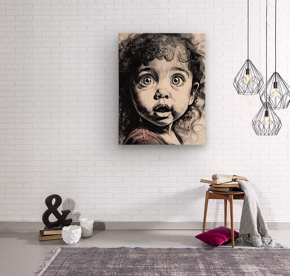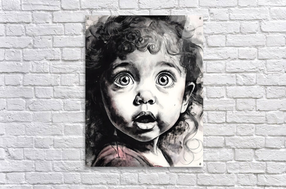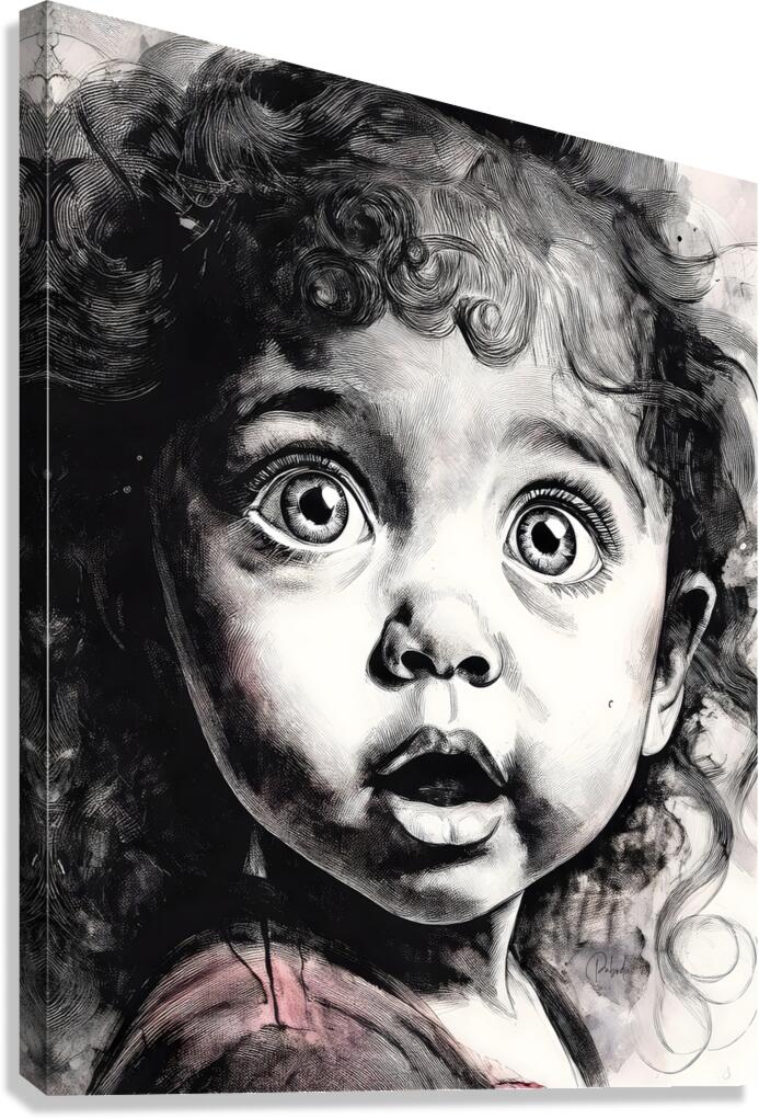 This comical toddlers face says Oh My! Her eyes are round and bright in suprise and her lips mouth the word OH! Her curly hair hangs in ringlets around her face and brow and she just makes you smile. Available in many media and sizes choose what works best for your decor. ALso consider hanging this with one or more from the Faces Collection to create a wall art to remember.