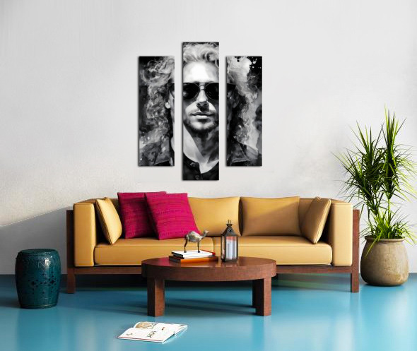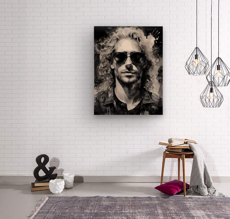 The dude is confident cocky and in his prime. He is a little full of himself as he rocks his long blond curly hair and looks out at you through his shades. Hang him alone or with one or more from the same Unique Faces Collection. All art is available in your choice of media and sizes and ships free to the US and Canada.