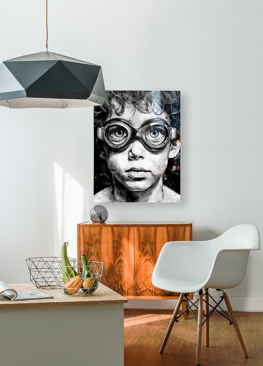 This young boy in his swimming goggles make a funny portrait as he stares directly at the viewer. His eyes are magnified by the lenses and he looks ready to get back to his swimming. Check out the entire Unique Faces Collection to find one or more to hang with this artist print to create a fabulous wall of art. Select your media and size preference and all art ships free to the US and Canada.