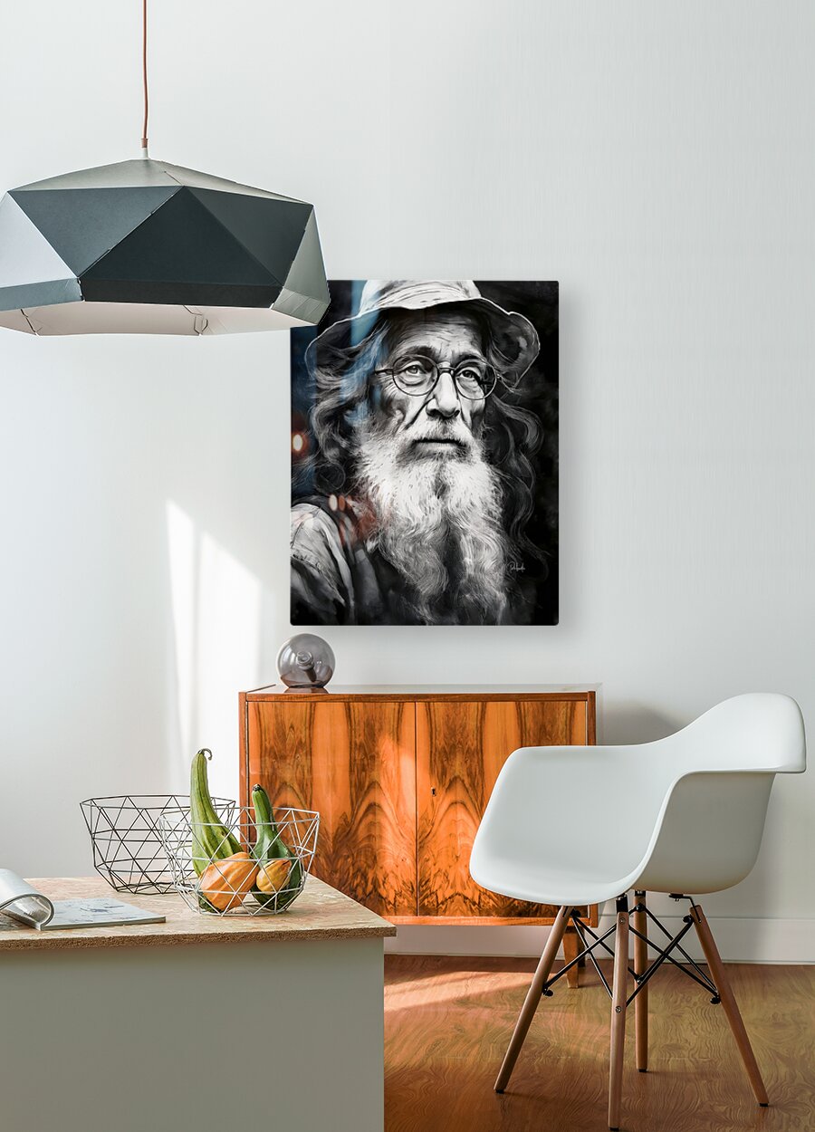 He is intent and patient and this fisherman is wearing his lucky fishing hat and knows that this will be a good day. His long heair and beard have weathered a few years as told by the wrinkles in his face. But he is a happy soul and relishes his retirement days fishing on the waters he loves. Bring this iconic image into your home or office by simply choosing your media and size. All art ships free to the US and Canada.