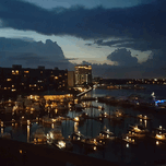 Its a summer night across the Old Port Cove Marina and lights from boats yachts and buildings reflect across the water. Music can be heard emanating ...[+]