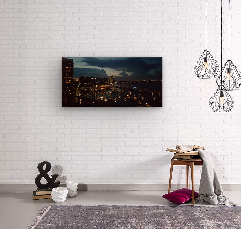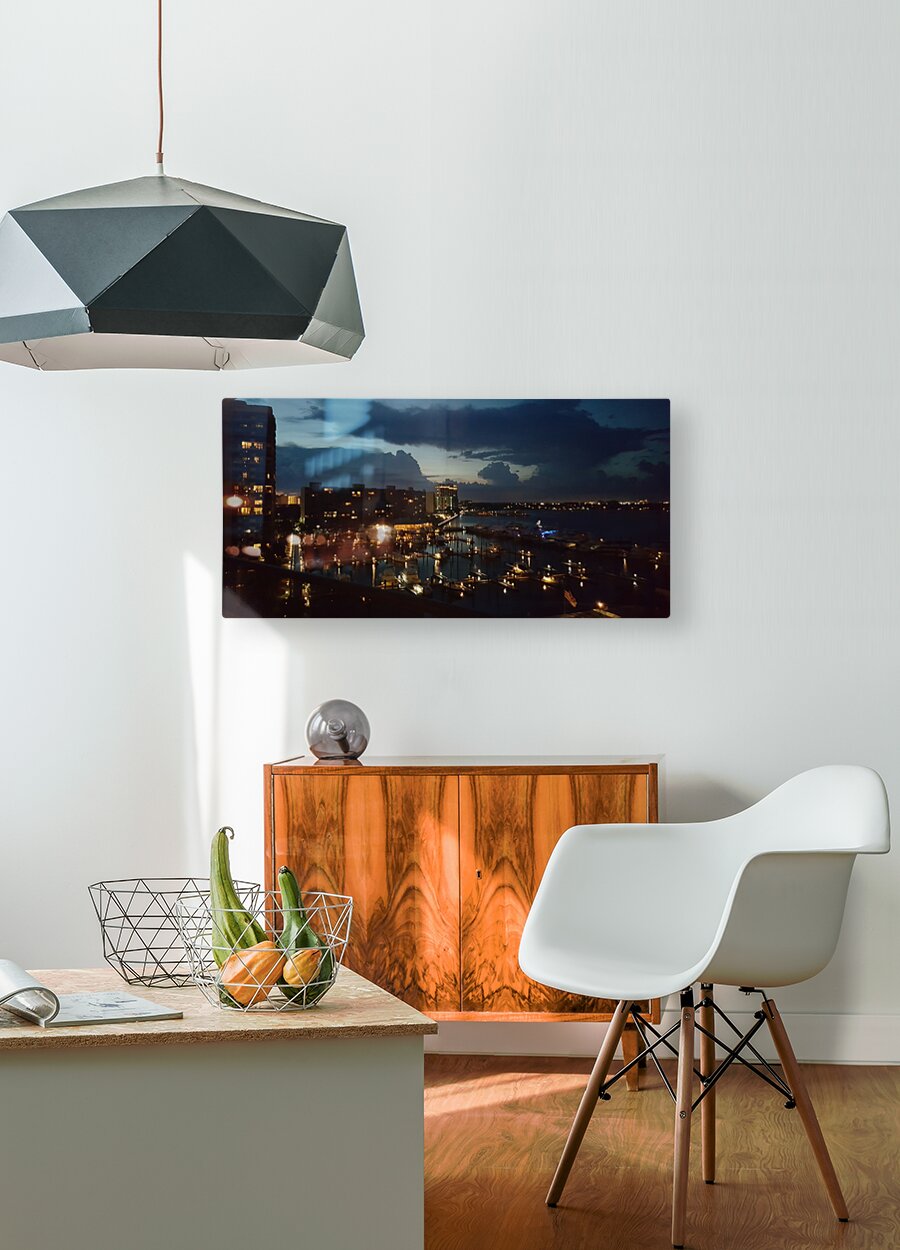 Its a summer night across the Old Port Cove Marina and lights from boats yachts and buildings reflect across the water. Music can be heard emanating from the restaurant and the atmosphere is calming and soothing. Enjoy this Pabodie artist print in your home or office and choose the size and media that best suits your wall space