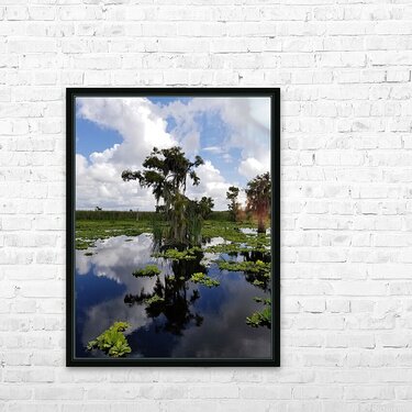 The beautiful colors in this Pabodie photo are reflecting this magical Osprey nest hidden at the top of this bald cypress tree. This huge Florida nest is home to a pair of Ospreys that mate for life and spend decades in their nest together. The nests can survive hurricane damage and are truly a marvel of engineering. Available in your choice of media sizes and finishes this photo is the perfect edition to your home or office.