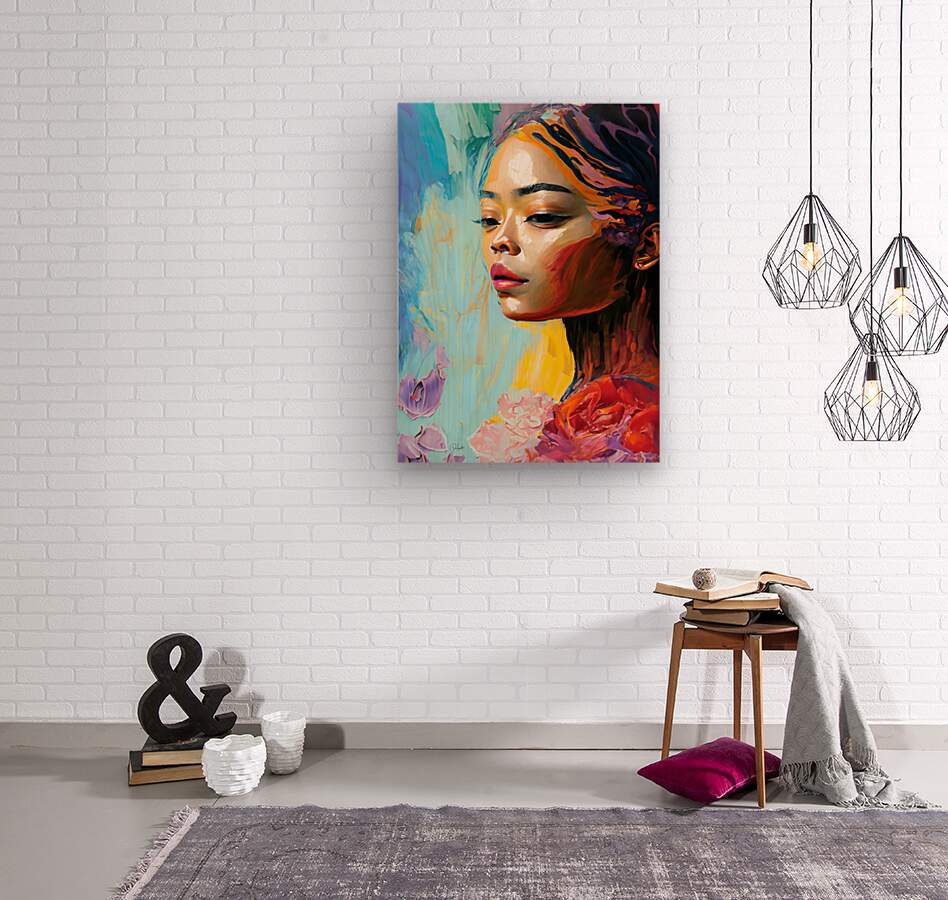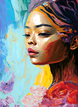 The first in a series of abstract face paintings this features a beautiful asian woman with soulful eyes gazing downward. This shows well on its own or select one or more in the series for an amazing wall collection. Available in your choice of sizes media and finishes bring this abstract artist print into your home or office today.