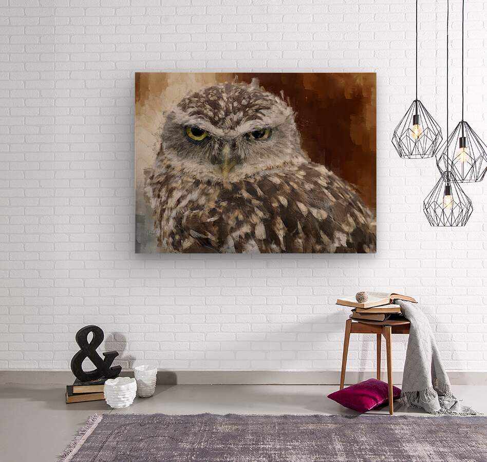 Burrowing Owls are also known as the Howdy Owl because they nod their heads to humans like a cowboy, apparently as a way to say hello. True to their name, they live underground in holes they dig themselves or that they have taken over from another animal like a prairie dog. They hunt both day and night and take naps in their burrow entrances between hunts. They are found in the western states and in southern Florida. They generally mate for life and nest in pairs. Bring home this eagle eyed Burrowing Owl today and put him in a place of honor on your wall. He stands alone easily or pair him with another of my paintings from my animal collection. Available in your choice of size and media all of our art comes with a 100% 30 day satisfaction guarantee.