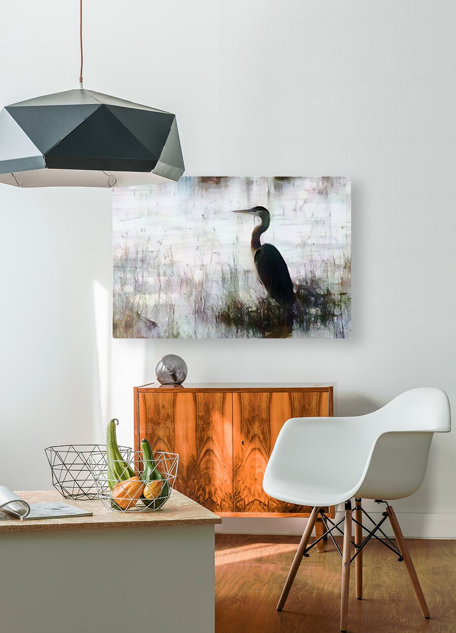 The Great Blue Heron is such a graceful bird as it sits and as it walks. But when it spies food it moves fast to claim its meal. This Heron is sitting in the shallows among the tall grasses and is intent on finding the next unsuspecting fish that comes his way. This Pabodie print is available in your choice of sizes media and finishes.