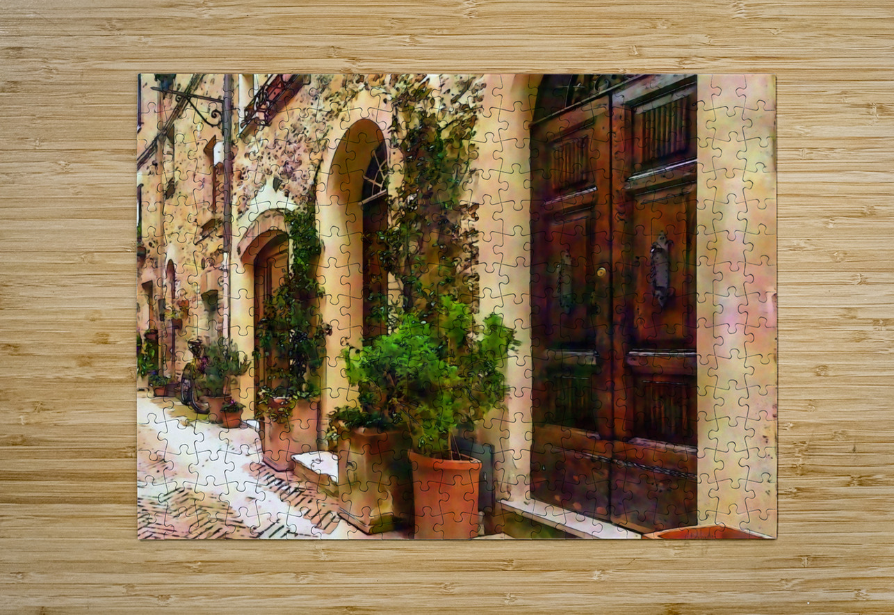 Gorgeous doors framed in arched stone make this brick paved road a sight to behold. Pride and artistic touches are evident everywhere you look. These historic buildings are well cared for and simply bring a smile to your face. The beauty of Italy deserves a place in your home or office today. Stone Arched Doors Along the Way artist print is available in canvas, metal, archival prints, framed prints, and more.