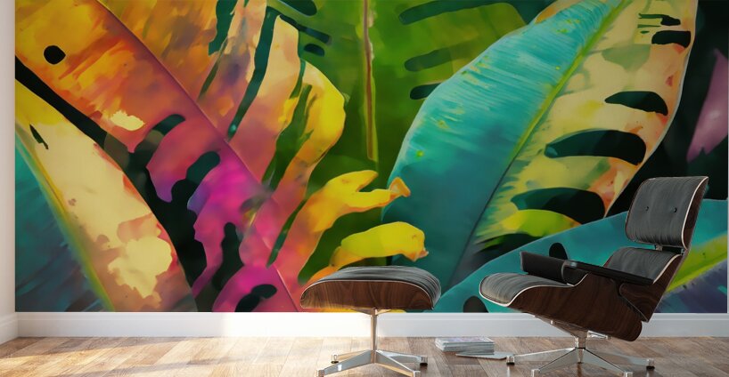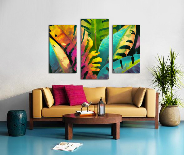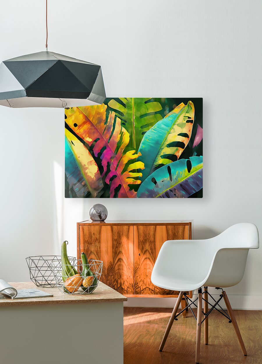 Colorful watercolor banana tree leaves make a colorful and striking artist print. Available in many media including canvas, acrylic, metal, framed an...[+]