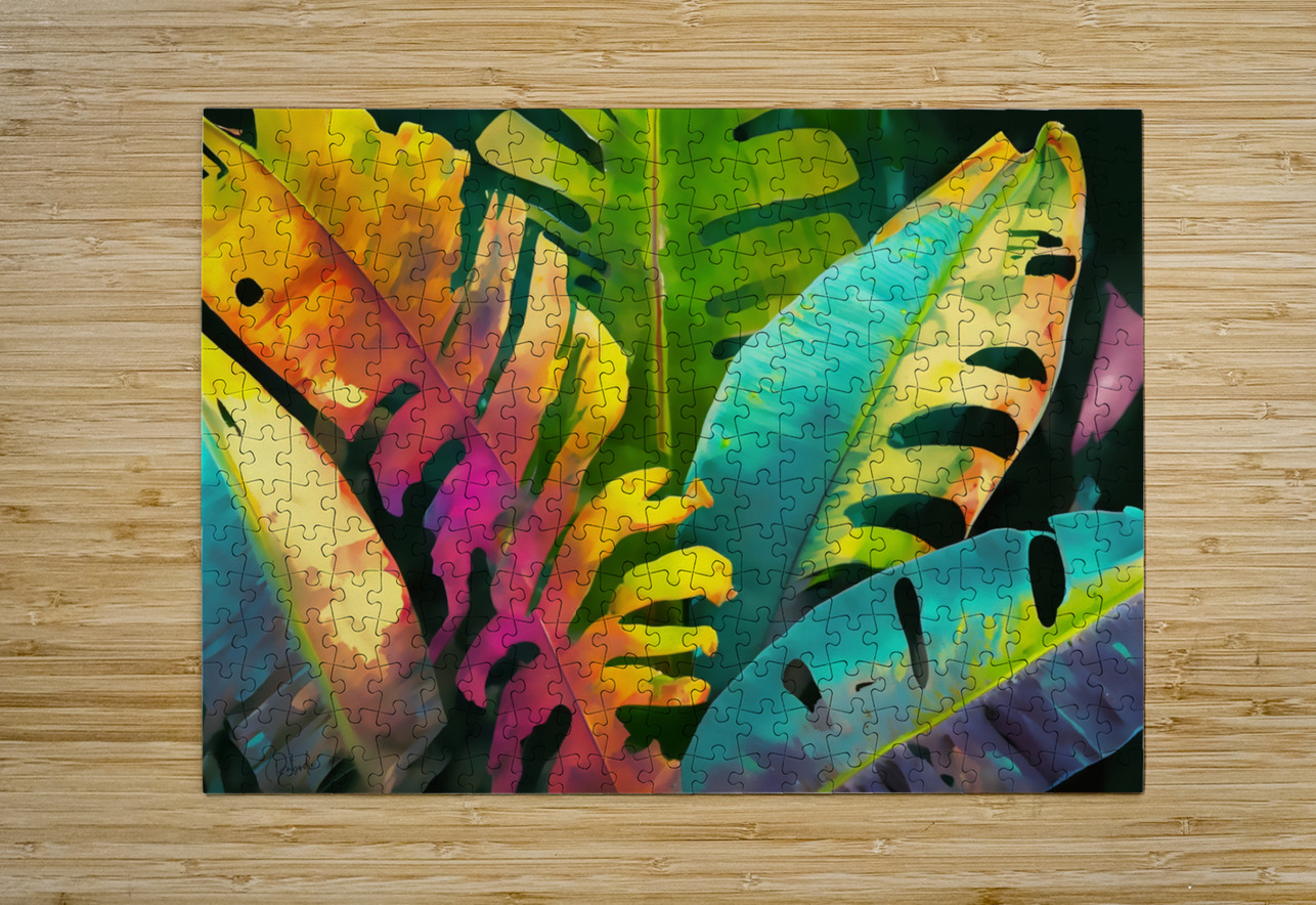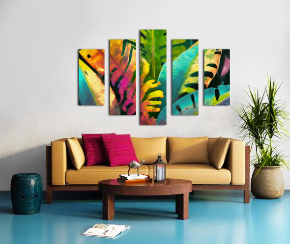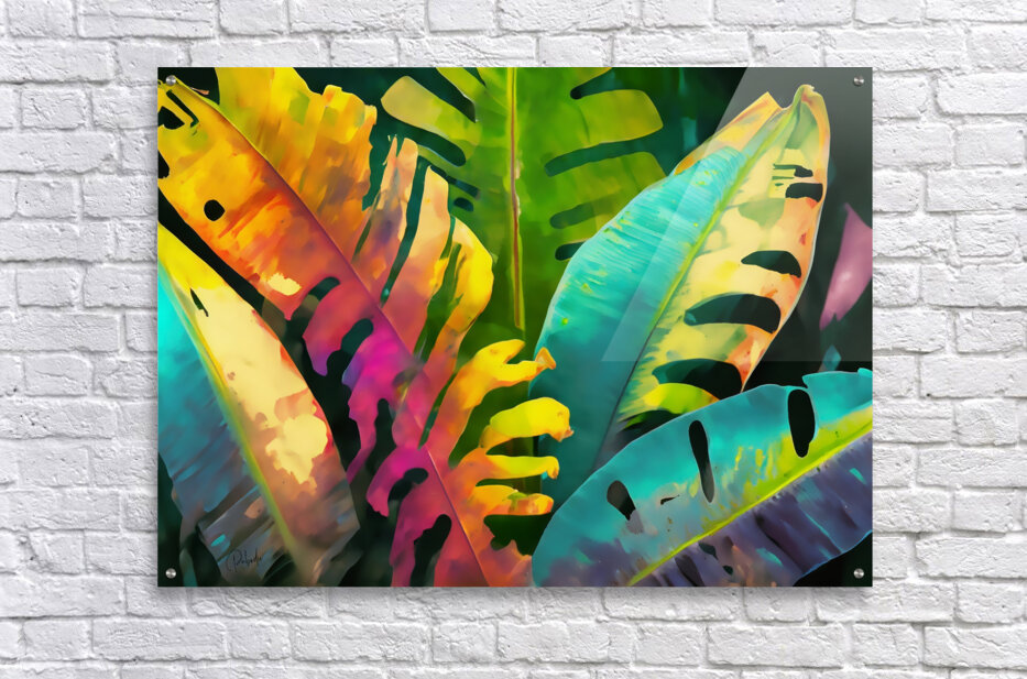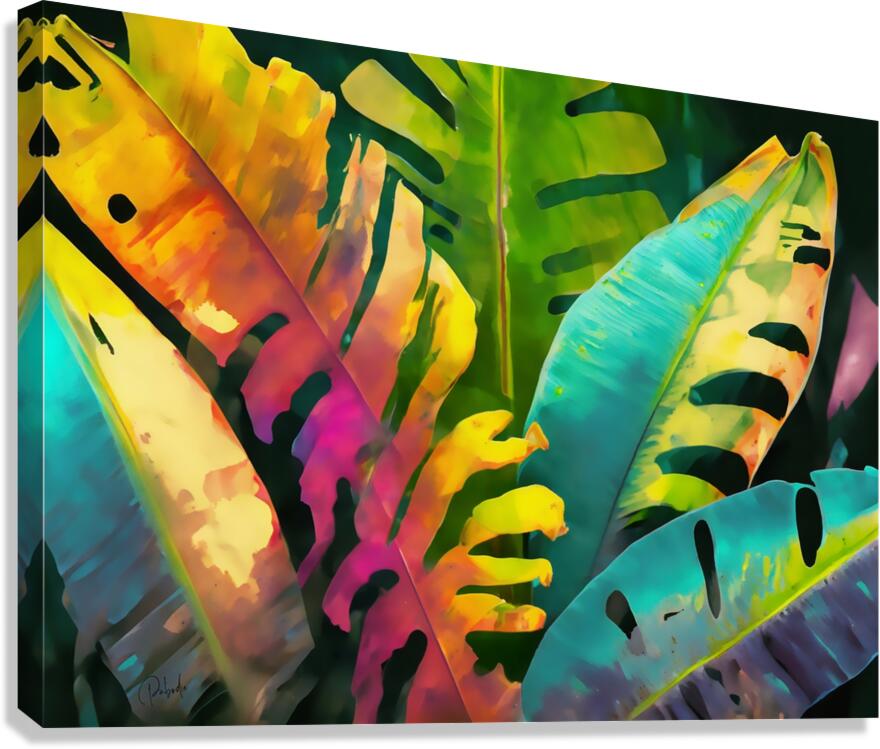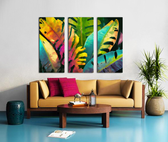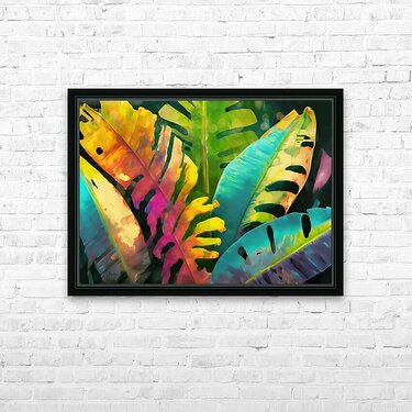 Colorful watercolor banana tree leaves make a colorful and striking artist print. Available in many media including canvas, acrylic, metal, framed an...[+]