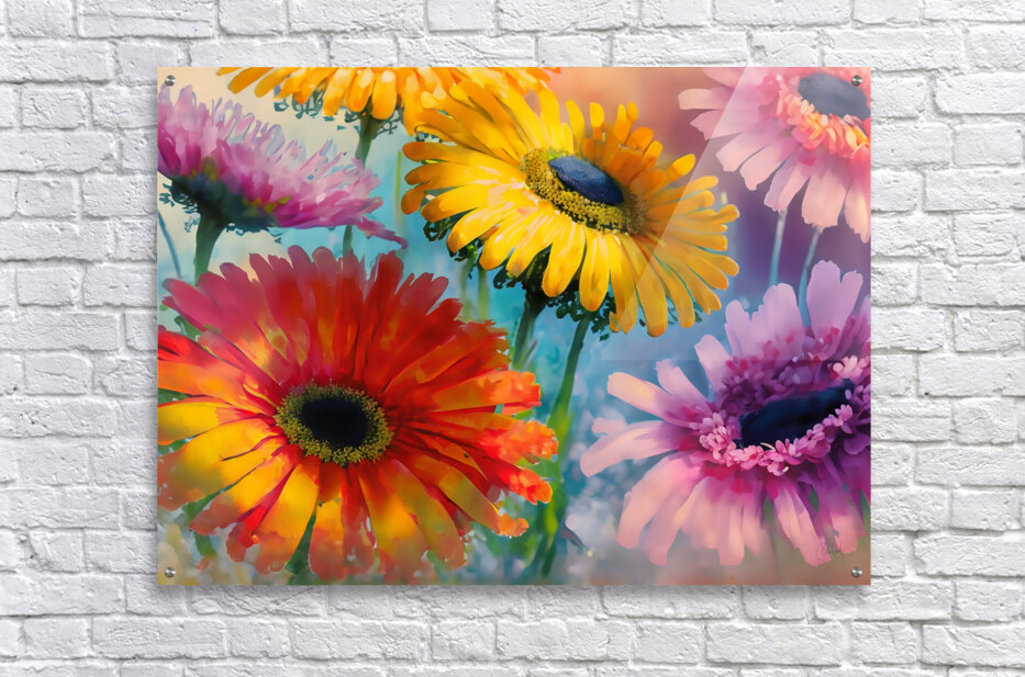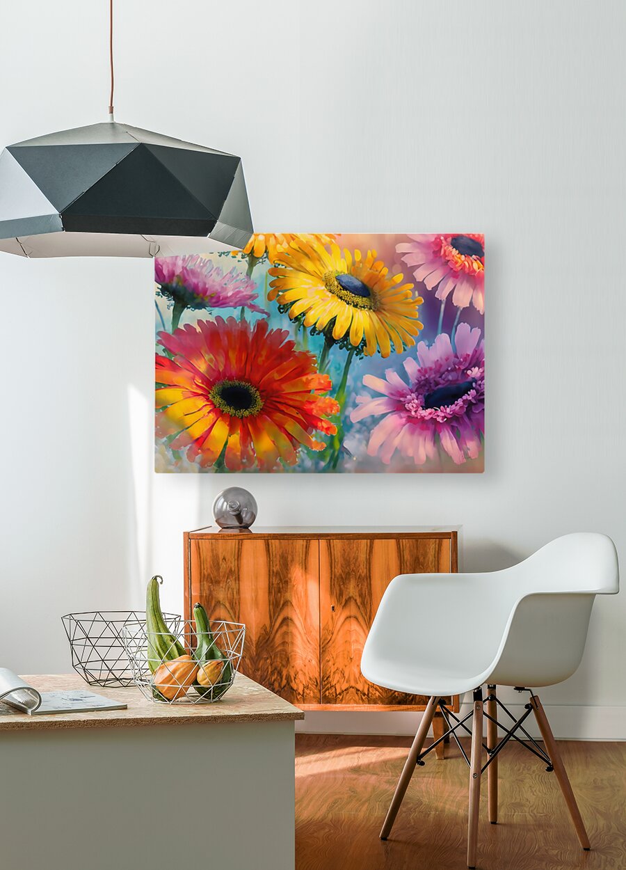 These colorful Gerbera Daisies are replicated in this watercolor painting. Their bright and vivid colors will brighten up any garden. This is the second in this series and can easily show on its own or adding its mate will make for a wonderful wall pairing. Available in canvas, acrylic, metal, framed and matted, or as archival prints. Select your media sizes and finishes and bring this rainbow of color into your home or office today.