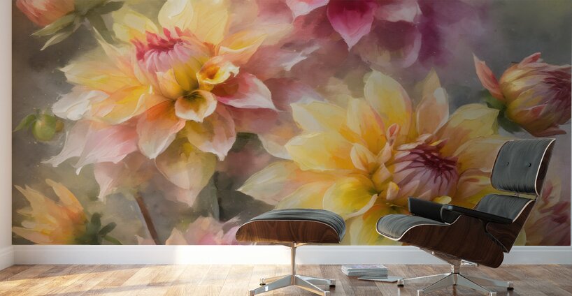 ABOUT THIS ARTWORK: DAHLIA BLOOMS AND BUDS