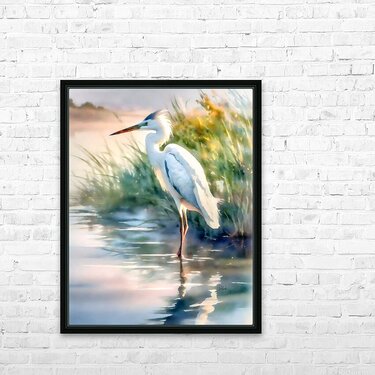 Standing still at attention in the light morning breeze, this egret is on high alert as he intently watches the waters for his next meal. Moving slowly and methodically egrets silently hunt and then suddenly you will see them move as quick as a flash, capturing a fish between their bills. Allow this majestic bird to grace your home or office wall and enjoy his presence for generations to come.
