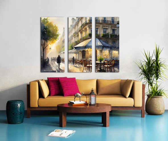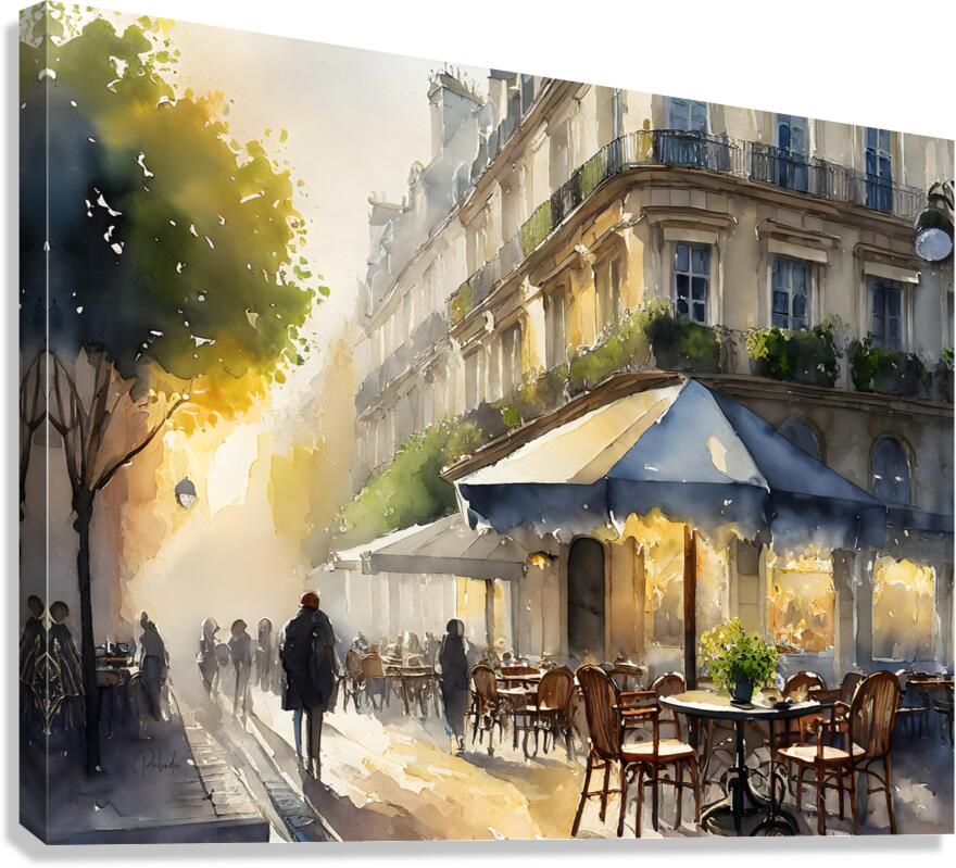 Its an early morning sunrise in Paris and the streets are waking up with the first light as a sprinkling of people make their way past the cafe. Soon it will be crowded with locals and tourists but this part of the day is peaceful and slow as the city rises with the sun. This lovely scene is available in your custom choice of media, sizes, and finishes. Turn that stale wall into a work of art!