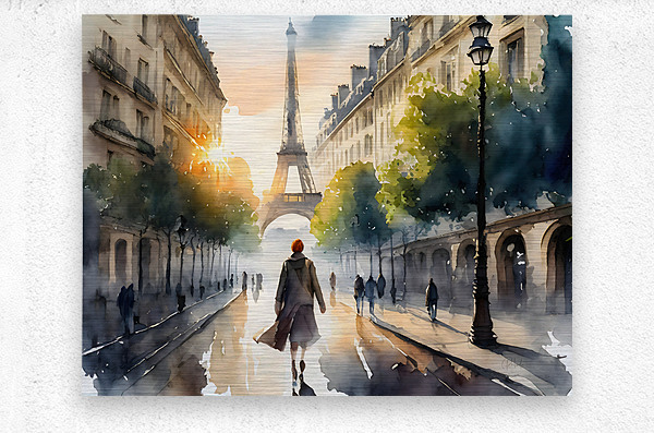 On her first day in Paris this woman strolls down the center of the street in the shadow of the iron lady the Eiffel Tower. She is in awe of its beauty and grandeur as she takes in the character and atmosphere of this grand city and its historic culture. Bring a bit of Paris to your home or office and choose your custom media and size combination for your waiting wall!