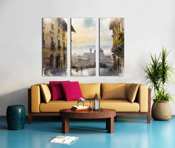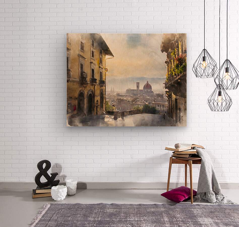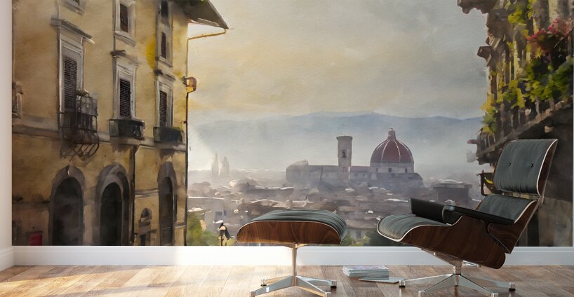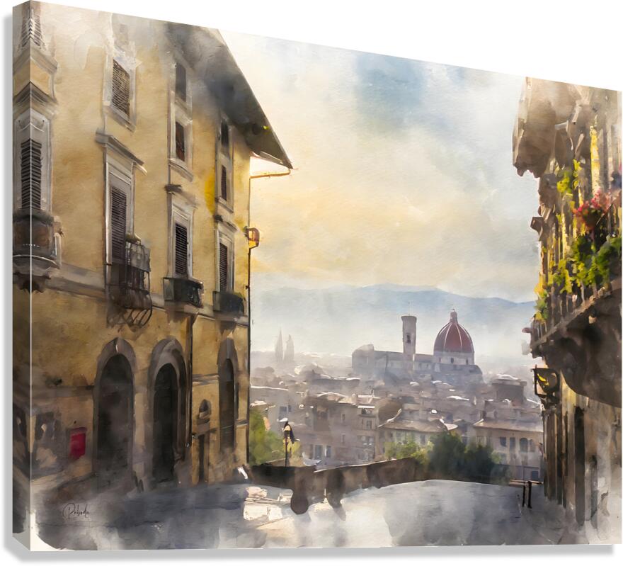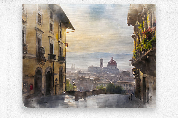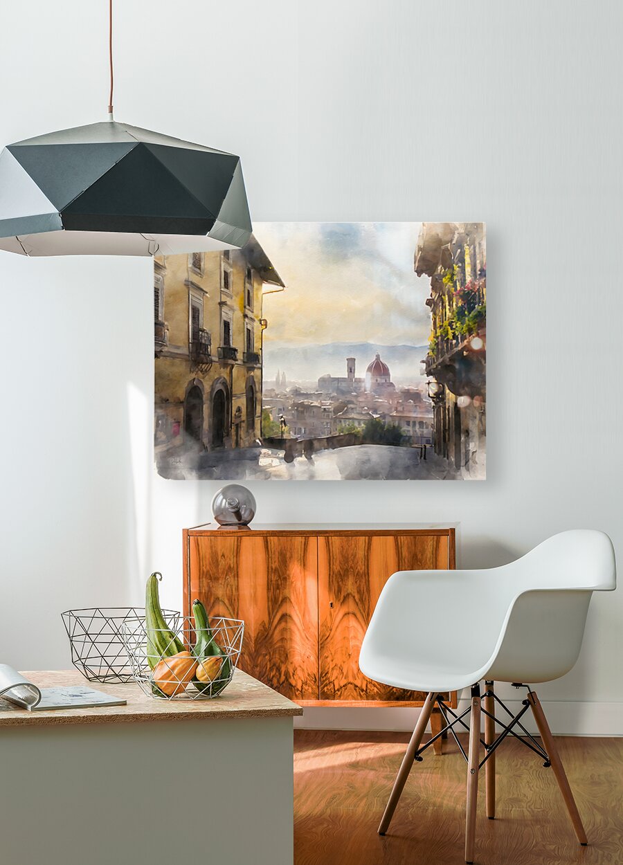 A picturesque view from above and looking down into the city of Florence this watercolor captures the essence of the city in the early morning light. Available in your custom choice of media and size choose the perfect finishes for your home or office.