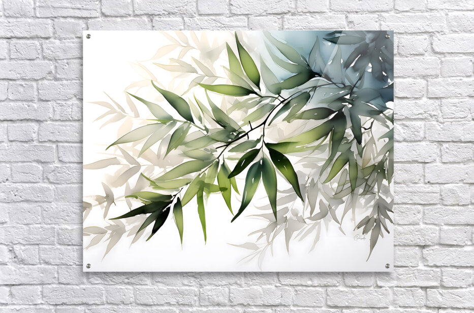 Delicate bamboo leaves are layered in to create this splash of green, grays, and blues. Straight from the landscape, this Pabodie Artist Print is yours simply by selecting your desired media and size. Bring this into your home or office for a sophisticated natural look.