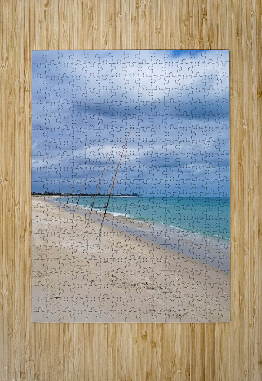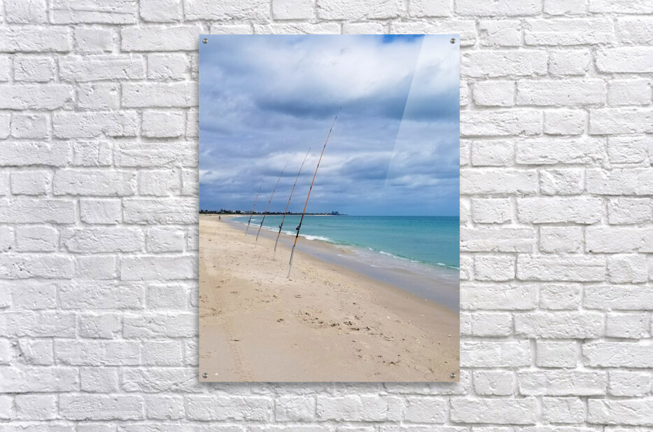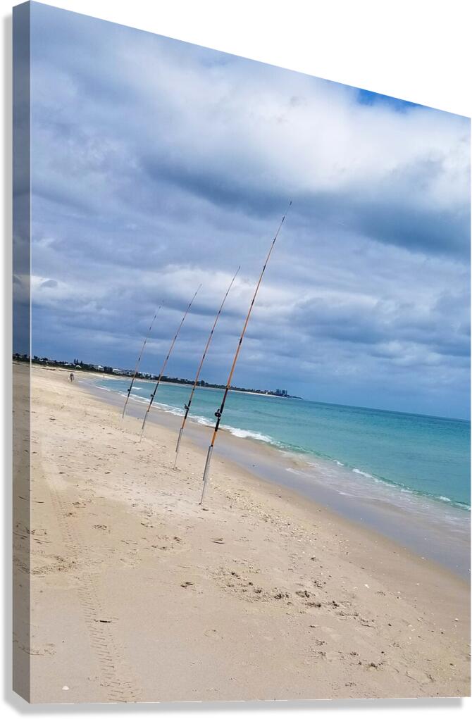 These fishing poles, set out by a shore fisherman, create their own art against the backdrop of this beautiful beach in Vero Beach, Florida. Sun, puffy clouds, and the ocean breaking softly against the sands brings on an easy sigh of contentment. This Pabodie artist print is available in your choice of media, including canvas, acrylic, wood, metal, framed prints and more. Choose your desired size and finishes and bring this bit of sunshine into your home or office today.